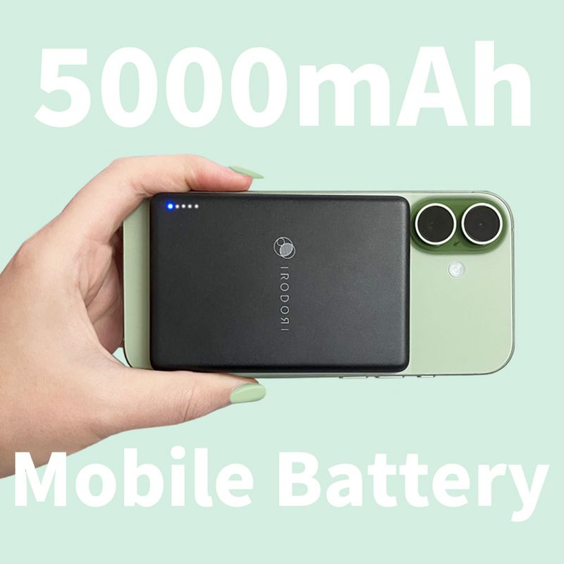 【超薄型7mm】5000mAh MagSafe対応モバイルバッテリー|ポケットサイズ・2台同時充電・急速対応 [IRODORI]